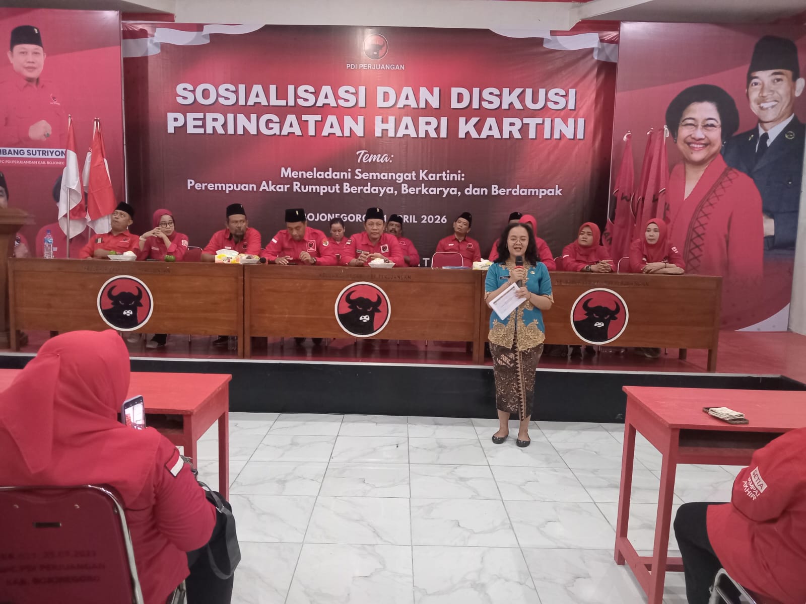 BOJONEGORO (JATIM) SUARAPANCASILA.ID- DPC PDI Perjuangan Kabupaten Bojonegoro memperingati Hari Kartini dengan menggelar diskusi bertema “Meneladani Semangat Kartini, Perempuan Akar Rumput Berdaya, Berkarya, dan Berdampak” di Aula DPC setempat, Rabu (21/4/2026).