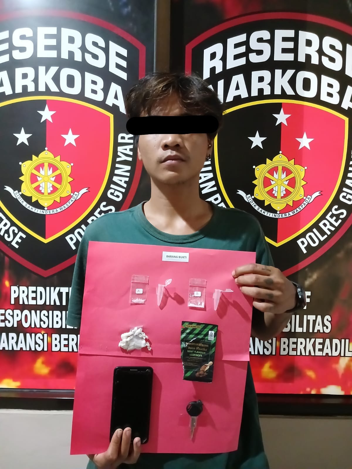 Pria usia 22 tahun asal Bandung Jawa Barat ini ditangkap oleh Satuan Reserse Narkoba Polres Gianyar pada, Rabu (24/4/2024) pukul 01.00 Wita di Jalan Raya Mas, Banjar Abianseka, Desa Mas, Kecamatan Ubud. Pelaku ditangkap pada saat mengambil paketan sabu-sabu yang dibagi kedalam dua paket dengan berat bersih 0,35 gram.