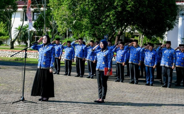 PANGKALAN BALAI — SUARAPANCASILA.ID – Wakil Bupati Netta Indian, SP, menegaskan bahwa setiap pegawai memiliki peran penting dalam mendukung kinerja organisasi, baik pimpinan maupun staf, dengan menunjukkan keteladanan, integritas, serta tanggung jawab dalam melaksanakan tugas. Hal ini disampaikan oleh Wabup Netta saat memimpin apel gabungan lingkup Pemerintah Kabupaten Banyuasin yang dilaksanakan di Halaman Kantor Bupati Banyuasin, Senin (20/4/2026).