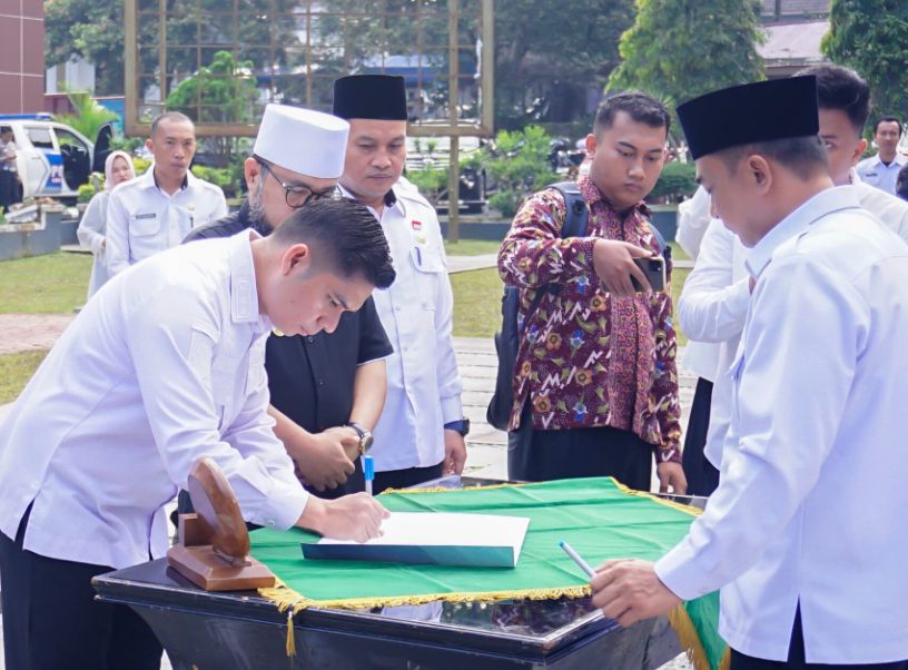 Surat pernyataan para pejabat itu diketahui Plt Bupati Dr H Hendri SSTP MSi. Surat pernyataan yang diteken para pejabat itu berisi 5 pernyataan. Pertama, saya tidak akan melakukan intervensi terhadap proses pengadaan barang dan jasa.