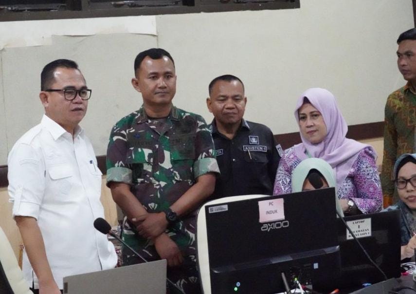 BANYUASIN, SUARAPANCASILA.ID – Penjabat (Pj) Bupati Banyuasin H. Hani Syopiar Rustam, SH didampingi Dandim 0430 Letkol Inf Roni Sugiarto, Kapolres Banyuasin AKBP Ferly Rosa Putra, SIK, Sekretaris Daerah (Sekda) Kabupaten Banyuasin Erwin Ibrahim, ST MM M BA IPU ASEAN ENG meninjau Desk Pemilu serentak Tahun 2024, Rabu (14/02/2024).