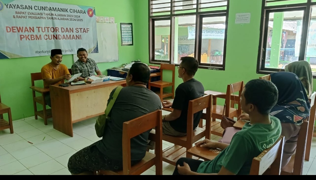 Pusat kegiatan belajar masyarakat (PKBM) cundamani yang beralamat lembaga di kampung Tegal RT 01 RW 03 desa panyaungan kecamatan cihara mengadakan rapat persiapan pembelajaran untuk tahun ajaran 2024/2025, rapat berlangsung di ruang kelas PKBM dihadiri seluruh staf dan tutor PKBM cundamanik serta pembina yayasan cundamanik Jum’at (12/7/2024)