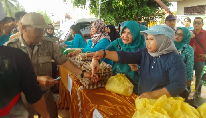 Sementara telur seharga Rp50.000 per 30 biji. kemudian beras SPHP 5 kg dengan harga Rp40.000. Barang-barang yang dijual tersebut dengan sekejap saja sudah habis terjual.