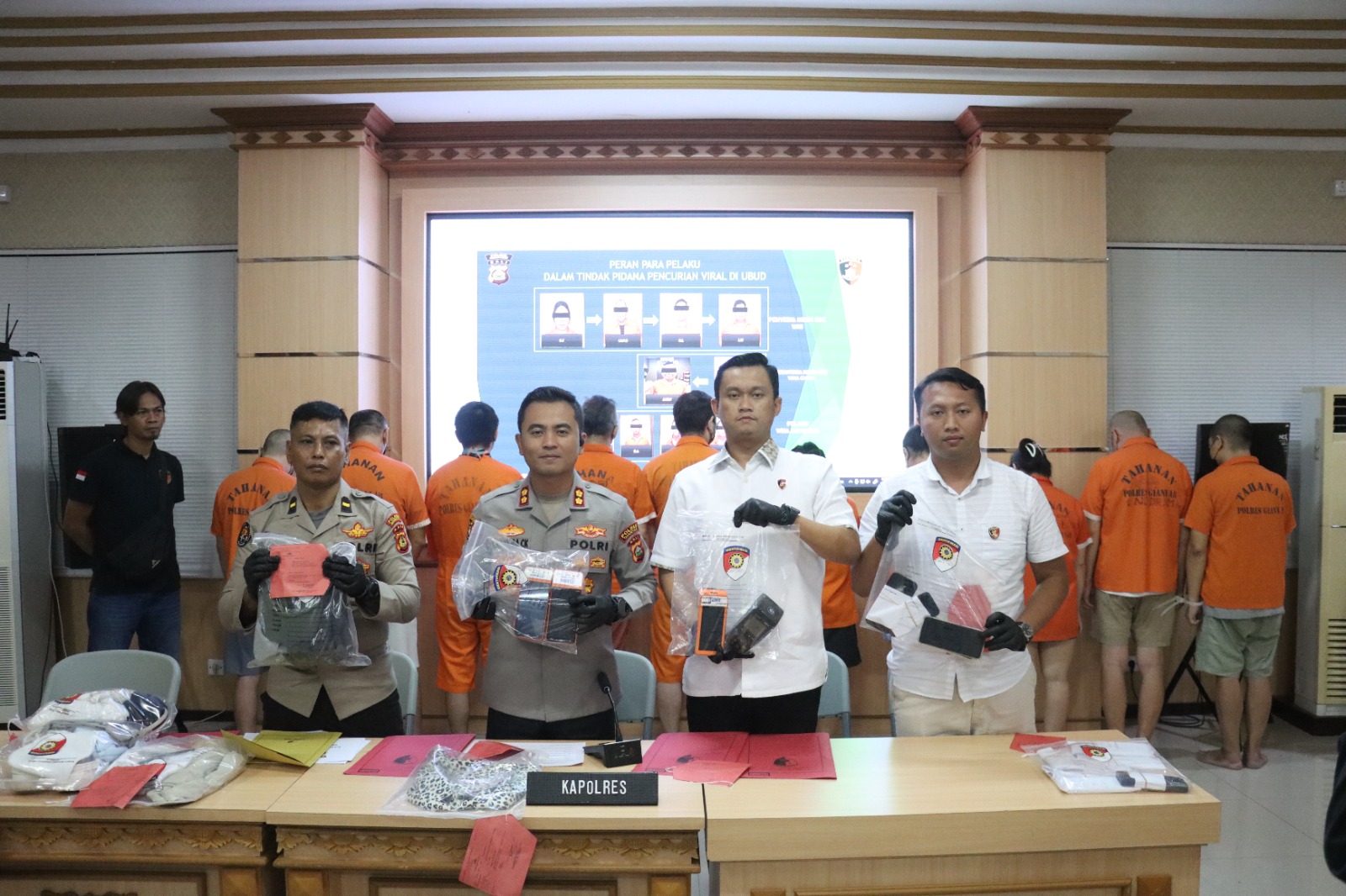 Dalam paparannya, Kapolres Gianyar menyampaikan bahwa kasus ini merupakan pengungkapan tindak pidana pencurian dengan modus copet yang dikendalikan melalui jaringan internasional, melibatkan pelaku WNI dan WNA.