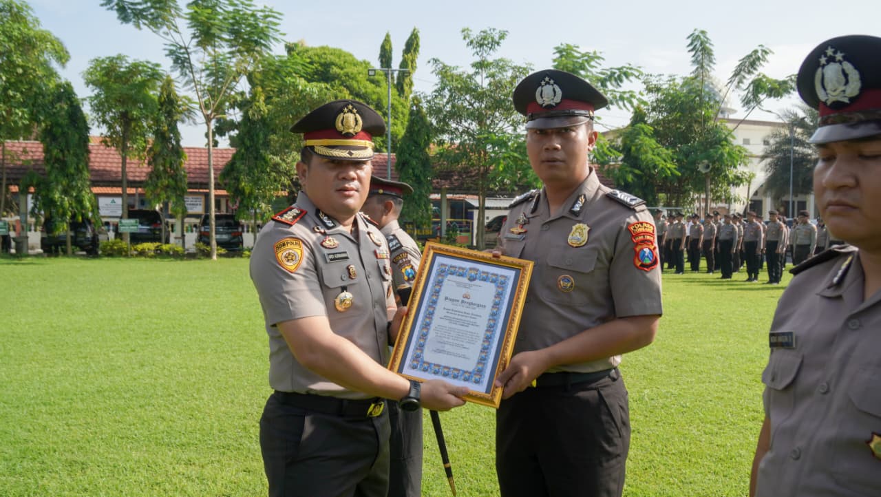 Penyerahan penghargaan dilakukan langsung oleh Kapolres Jombang, AKBP Ardi Kurniawan, S.H., S.I.K., CPHR, dalam upacara apel di lapangan Mapolres Jombang pada Senin (19/1/2026). Penyerahan penghargaan disaksikan para PJU dan Polsek jajaran.