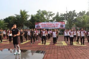 Jelang HUT Bhayangkara ke-78, Polres Lebak Polda Banten menggelar Olahraga Bersama TNI-POLRI dan Forkopimda Lebak di Lapangan Mapolres Lebak. Jum’at (21/6/2024).