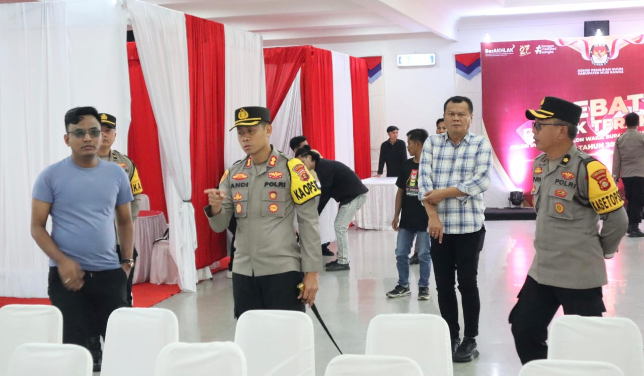 MUSI RAWAS (SUMSEL), SUARAPANCASULA.ID -Polres Musi Rawas (Mura), menggelar kegiatan monitoring sekaligus pengamanan Debat Publik Terakhir Calon Bupati dan Wakil Bupati Kabupaten Musi Rawas Pada Pemilihan Serentak Tahun 2024, di Ball Rom Gedung Bagas Raya Lubuklinggau, Sabtu (23/11/2024).