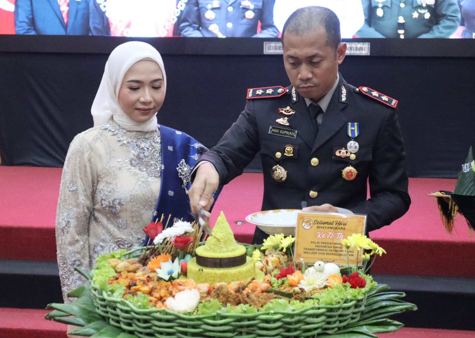 “Seperti kita ketahui bersama bahwa hari Bhayangkara adalah hari Kepolisian Negara Republik Indonesia di mana fungsi dan organisasi kepolisian telah ada sejak zaman dahulu kala sebagai salah satu kebutuhan manusia yang mendasar yaitu kebutuhan akan rasa aman,” kata suami Ny Meita Andi ini