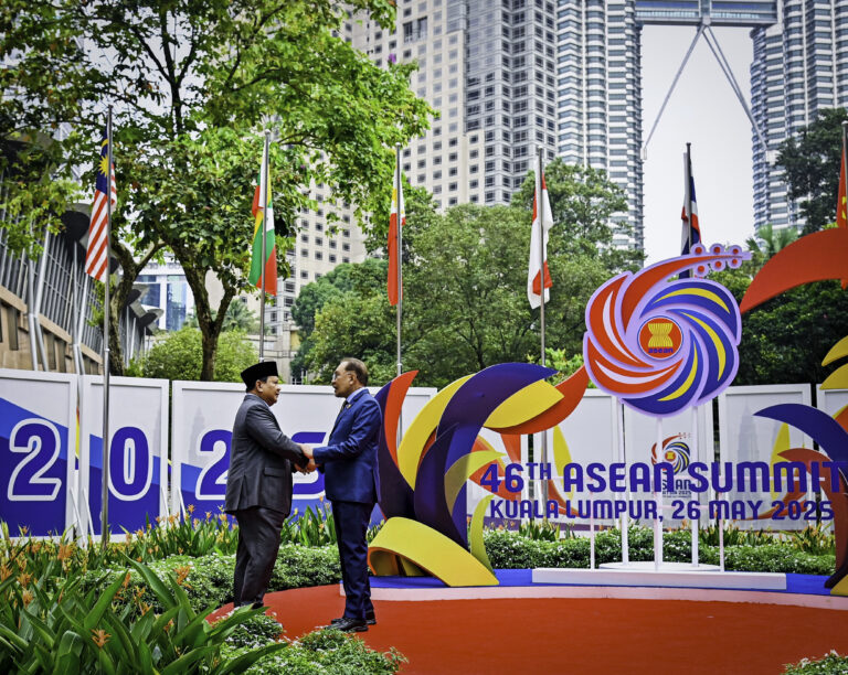 NASIONAL,SUARAPANCASILA.ID- Presiden Republik Indonesia, Prabowo Subianto tiba di Kuala Lumpur Convention Centre (KLCC), Kuala Lumpur, Malaysia, pada Senin, 26 Mei 2025, untuk menghadiri Konferensi Tingkat Tinggi (KTT) ke-46 ASEAN. Tiba pukul 08.35 waktu setempat (WS), Presiden Prabowo disambut secara langsung oleh Perdana Menteri (PM) Malaysia, Anwar Ibrahim di halaman KLCC.