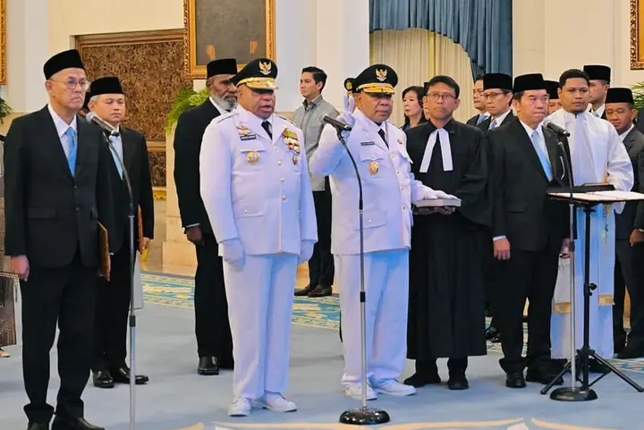 Jakarta – Suarapancasila.id – Presiden Prabowo Subianto melantik Matius Fakhiri dan Aryoko Alberto Ferdinand Rumaropen sebagai Gubernur dan Wakil Gubernur Papua, di Istana Negara, Jakarta, Rabu (08/10/2025).