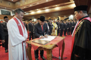 BADUNG,SUARAPANCASILA.id-DPRD Kabupaten Badung resmi melantik 45 anggota terpilih untuk periode 2024-2029 dalam Rapat Paripurna yang digelar di Ruang Sidang Utama Gosana, Lantai III, Kantor Sekretariat DPRD Kabupaten Badung, pada Senin, 5 Agustus 2024. Rapat ini juga menjadi ajang peresmian pemberhentian anggota DPRD periode 2019-2024.