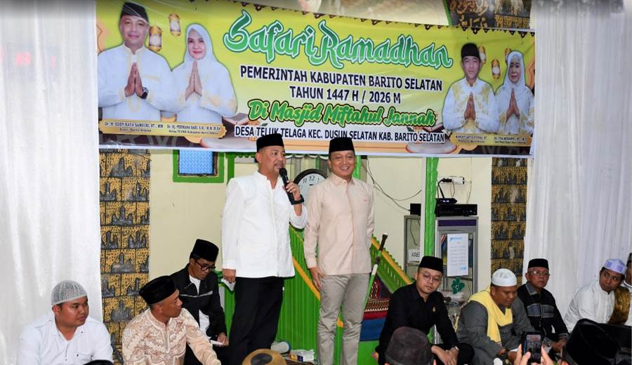 BARITO SELATAN (KALTENG), SUARAPANCASILA.ID – Bupati Barito Selatan, H. Eddy Raya Samsuri, menghadiri kegiatan Safari Ramadhan di Desa Teluk Telaga, Kecamatan Dusun Selatan, Rabu (25/02/2026). Kegiatan ini menjadi momentum kebersamaan antara pemerintah daerah dan masyarakat.