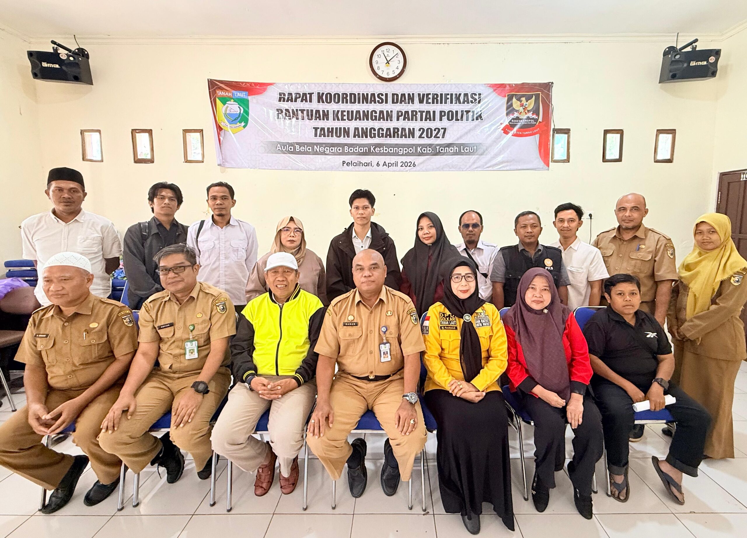 Pelaihari(KALSEL), SUARA PANCASILA.ID – Senin pagi, 6 April 2026, Aula Bela Negara Badan Kesatuan Bangsa dan Politik (Kesbangpol) Kabupaten Tanah Laut menjadi titik temu para pengurus partai politik. Dalam suasana yang formal namun sarat kepentingan strategis, agenda rapat koordinasi dan verifikasi pantauan keuangan partai politik untuk tahun anggaran 2027 resmi digelar.
