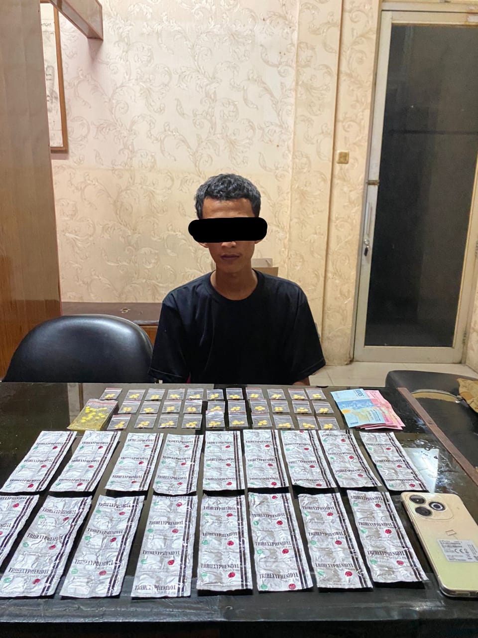 Ratusan butir obat tanpa izin edar yang berhasil diamankan dari Pelaku AL (20) Warga Kecamatan Cikeusik Pandeglang terdiri dari 140 (seratus empat puluh) butir obat warna kuning dengan logo MF jenis Hexymer , 170 (seratus tujuh puluh) butir obat jenis Trihexyphenidyl. Selain mengamankan ratusan butir obat Petugas juga mengamankan brang bukti uang tunai hasil penjualan sebesar Rp. 450.000 (empat ratus lima puluh ribu rupiah) dan 1 (satu) unit Handphone merk Infinix tipe Smart 8 warna putih.