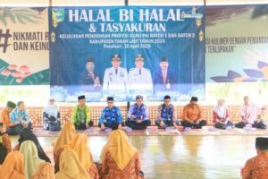 Takisung, TANAH LAUT (KALSEL), SUARA PANCASILA.ID – 10 April 2025 – Angin sejuk Pegunungan Batilai jadi saksi berkumpulnya ratusan guru Pendidikan Agama Islam (PAI) dari seluruh penjuru Tanah Laut. Bertempat di Rumah Makan Pegunungan Batilai, Forum PPG PAI Tala 2024 menggelar acara halal bihalal sekaligus syukuran atas kelulusan para guru dalam Program Pendidikan Profesi Guru (PPG) tahun anggaran 2024.