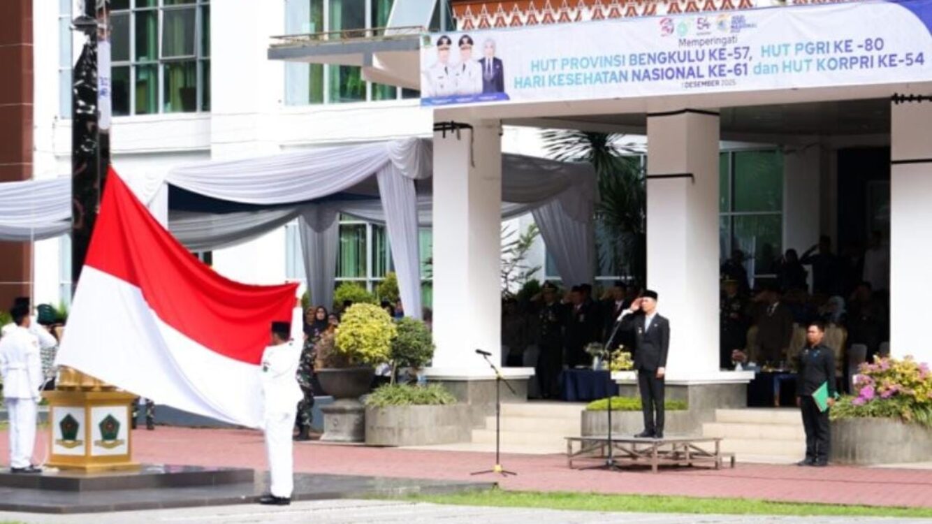 Empat peringatan nasional yang dirangkai dalam satu upacara itu meliputi Hari Kesehatan Nasional (HKN) ke-61, HUT Provinsi Bengkulu ke-57, Hari Guru Nasional (HGN) ke-80, serta HUTKorpri ke-54.