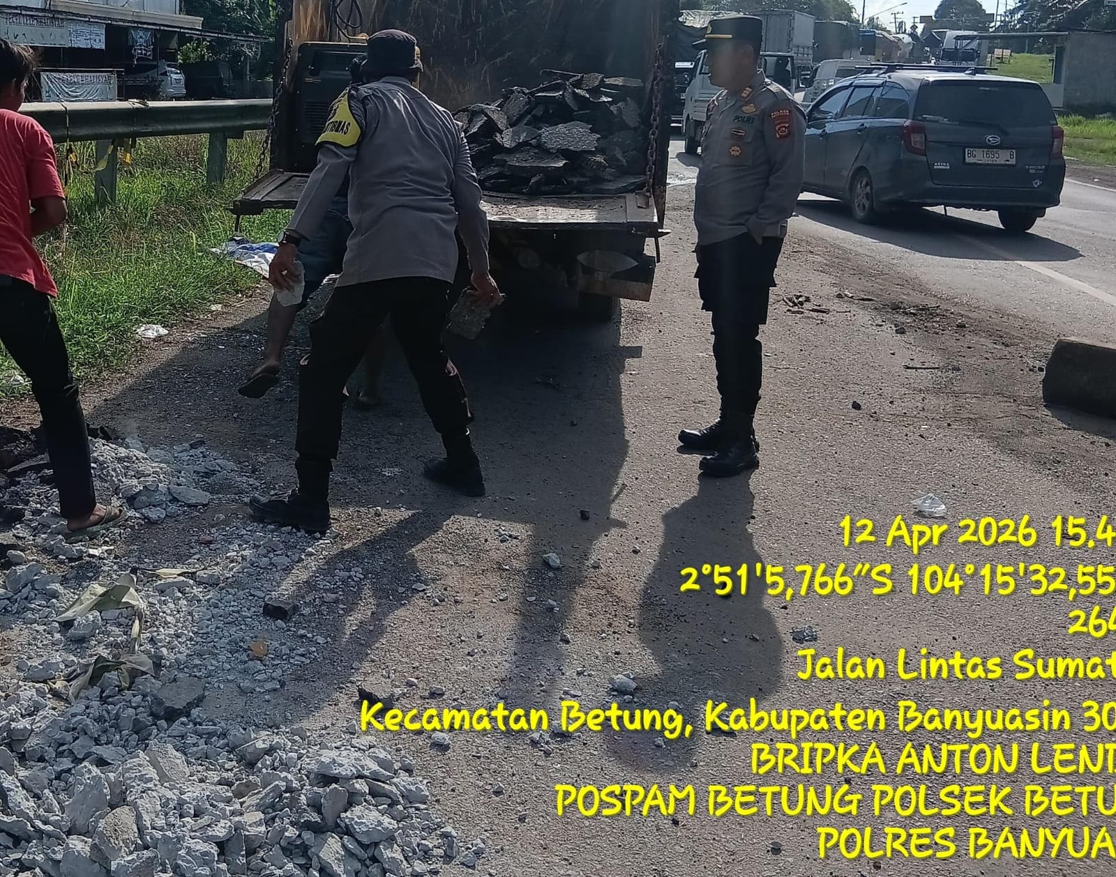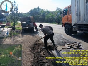 Kapolsek Betung, AKP Riady Sasongko SH, memimpin langsung personelnya untuk menimbun lubang-lubang tersebut menggunakan material batu dan pasir. Ia menegaskan bahwa inisiatif ini diambil sebagai bentuk pelayanan prima kepolisian demi keamanan masyarakat.