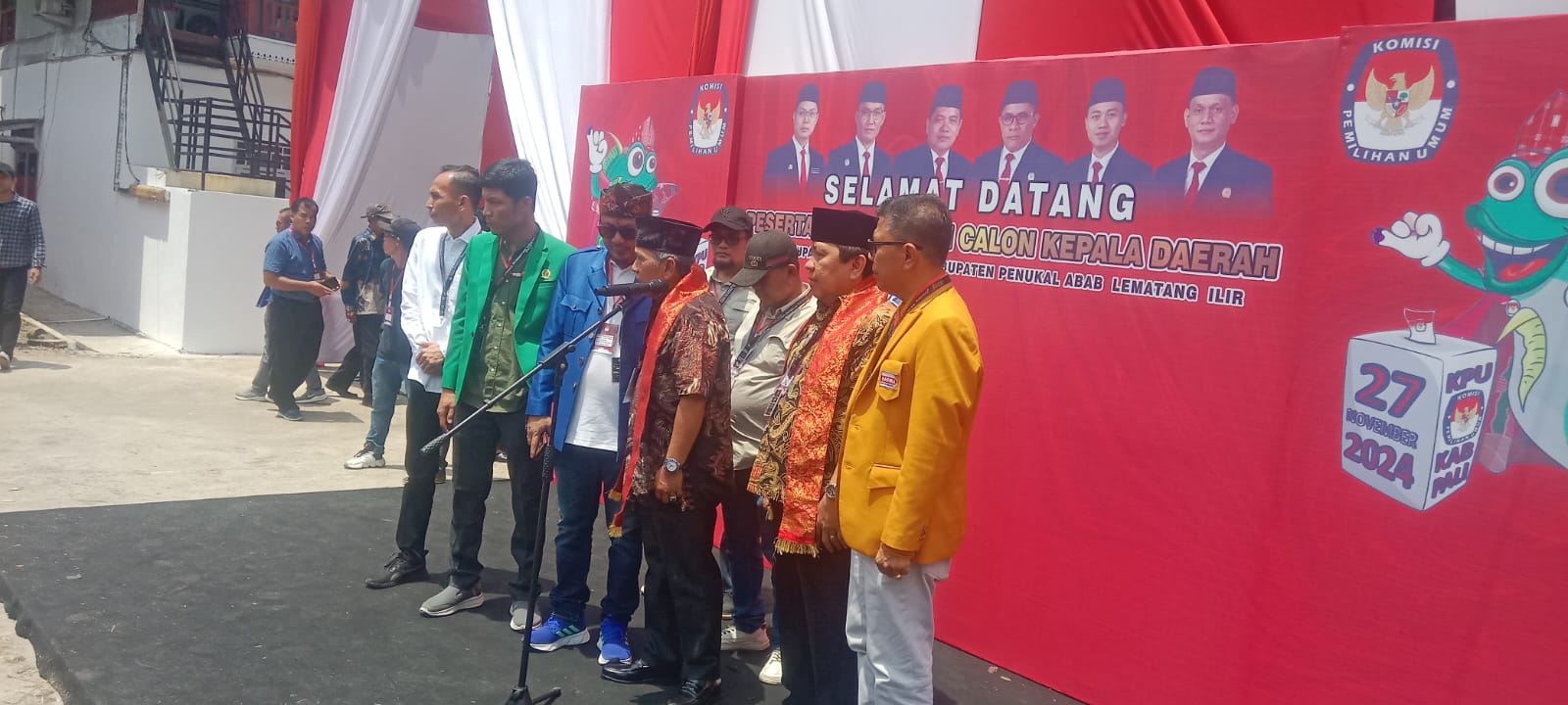 PALI (SUMSEL), SUARAPANCASILA.ID – Hari kemarin Kamis (29/8/2024) sekira Pukul 11:30 Wib pasangan calon Junaidi – Edwar (Jedar) mendatangi kantor Komisioner KPU, Kabupaten Penukal Abab Lematang Ilir (PALI), mendaptar sebagai calon Bupati dan calon Wakil Bupati Periode 2025 – 2030″.