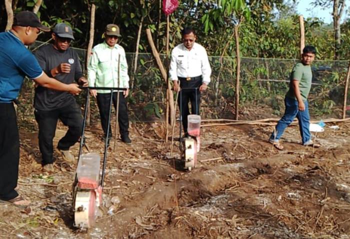 Di tengah hamparan tanah yang mulai ditanami jagung, suasana terlihat sederhana namun penuh makna. Tanah yang digemburkan, bibit yang ditanam, dan harapan yang tumbuh bersama setiap benih yang masuk ke dalam tanah.