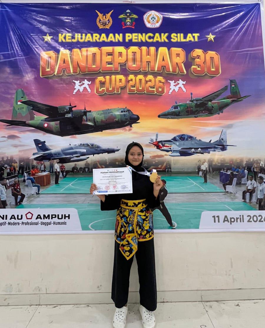KOTA MALANG (JATIM), SUARAPANCASILA,ID – Gelaran bergengsi kejuaraan pencak silat Dandepohar 30 CUP 2026 yang dilaksanakan di Gedung Cakrawala Lanud Abdulrachman Saleh pada 11 April 2026 menjadi saksi ketangguhan atlet muda Kota Malang. Dalam kompetisi memperingati HUT ke-80 TNI Angkatan Udara tersebut, Velizca Zelda Chesy Afriandhika sukses meraih predikat Juara 1 Seni Tunggal Tunggal Bebas Pra Remaja Putri.