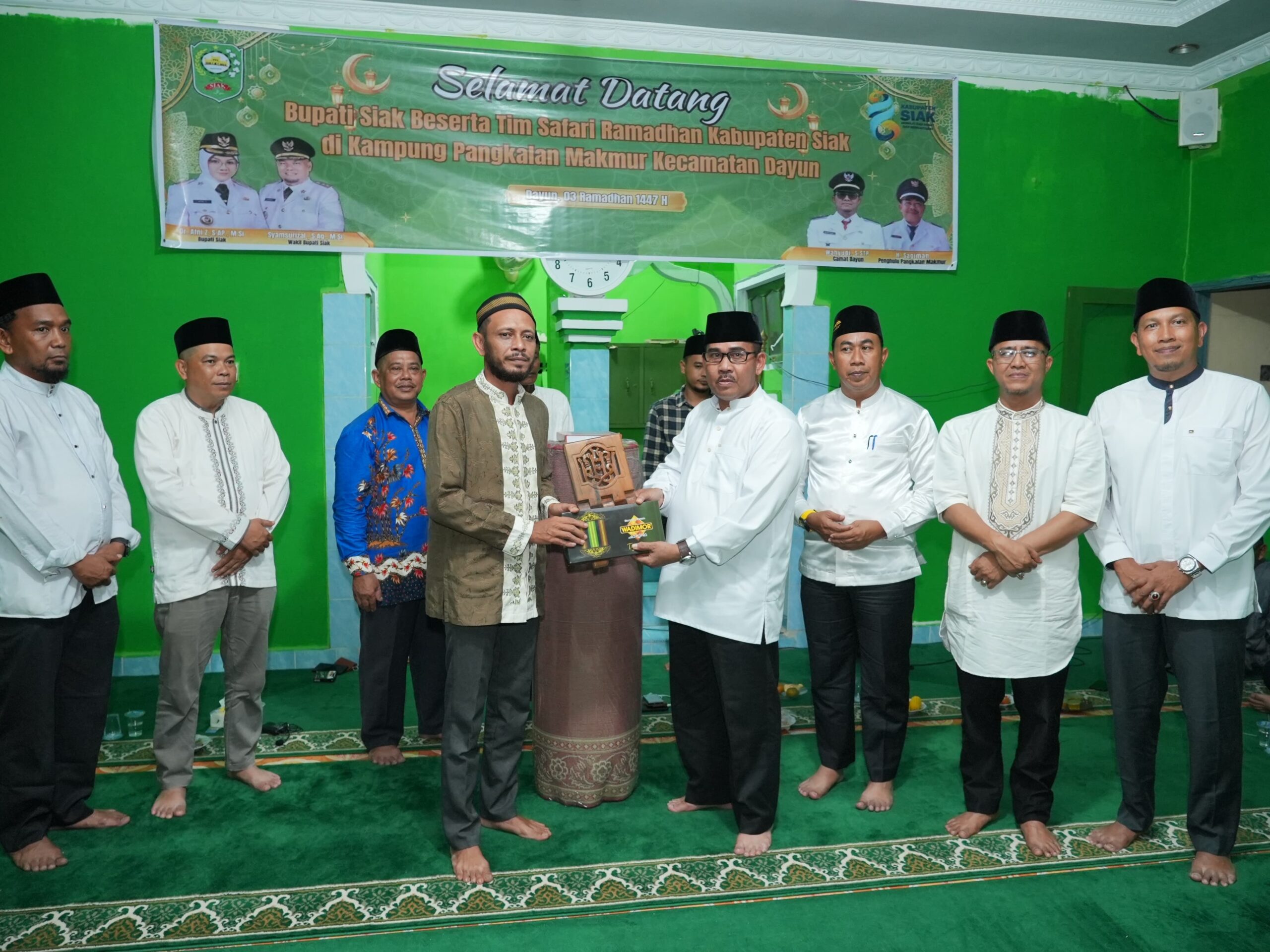 Pada kesempatan tersebut, Pemerintah Kabupaten Siak melalui Bagian Kesra Setda Kabupaten Siak juga menyerahkan bantuan berupa Al-Qur’an, sarung, serta satu rol sajadah untuk Masjid Nurul Huda, Dusun Pandan Jaya.