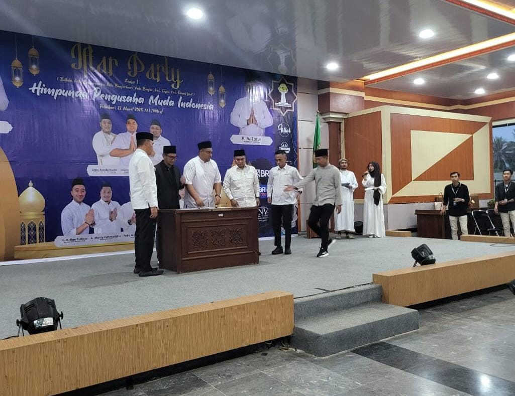 TANAH LAUT (KALSEL), SUARAPANCASILA.ID – Himpunan Pengusaha Muda Indonesia (HIPMI) BPD Kalimantan Selatan menggelar Safari Ramadhan yang berlangsung meriah di Gedung Balairung Tuntung Pandang, Pelaihari, pada Sabtu (22/3/2025). Acara ini menjadi momentum penting dalam memperkuat sinergi antara pemuda dan pemerintah untuk membangun ekonomi yang lebih kuat dan berkelanjutan.