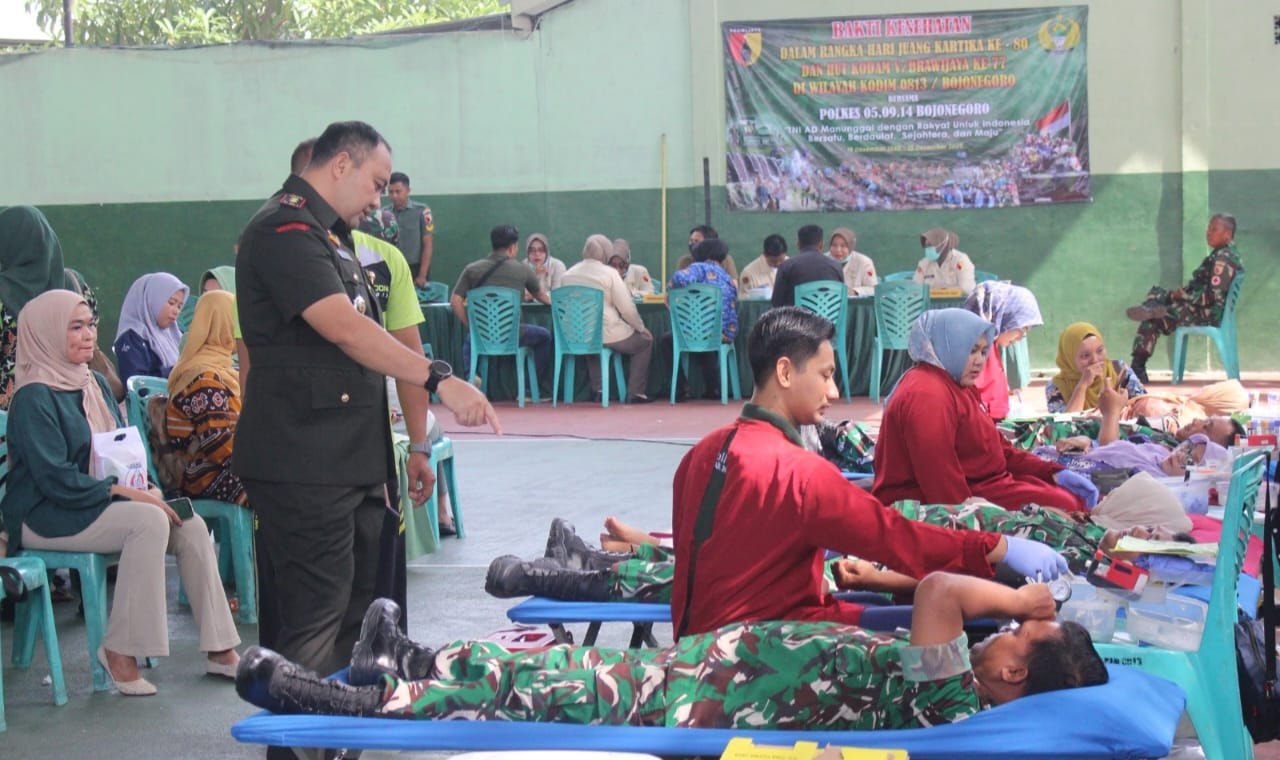 KAB. BOJONEGORO (JATIM), SUARAPANCASILA.ID – Bekerja sama dengan Palang Merah Indonesia (PMI) dan Poliklinik Kesehatan (Polkes) 05.09.14 Bojonegoro, Komando Distrik Militer (Kodim) 0813 Bojonegoro menggelar kegiatan Bhakti Kesehatan Donor Darah dan layanan pemeriksaan kesehatan secara gratis.