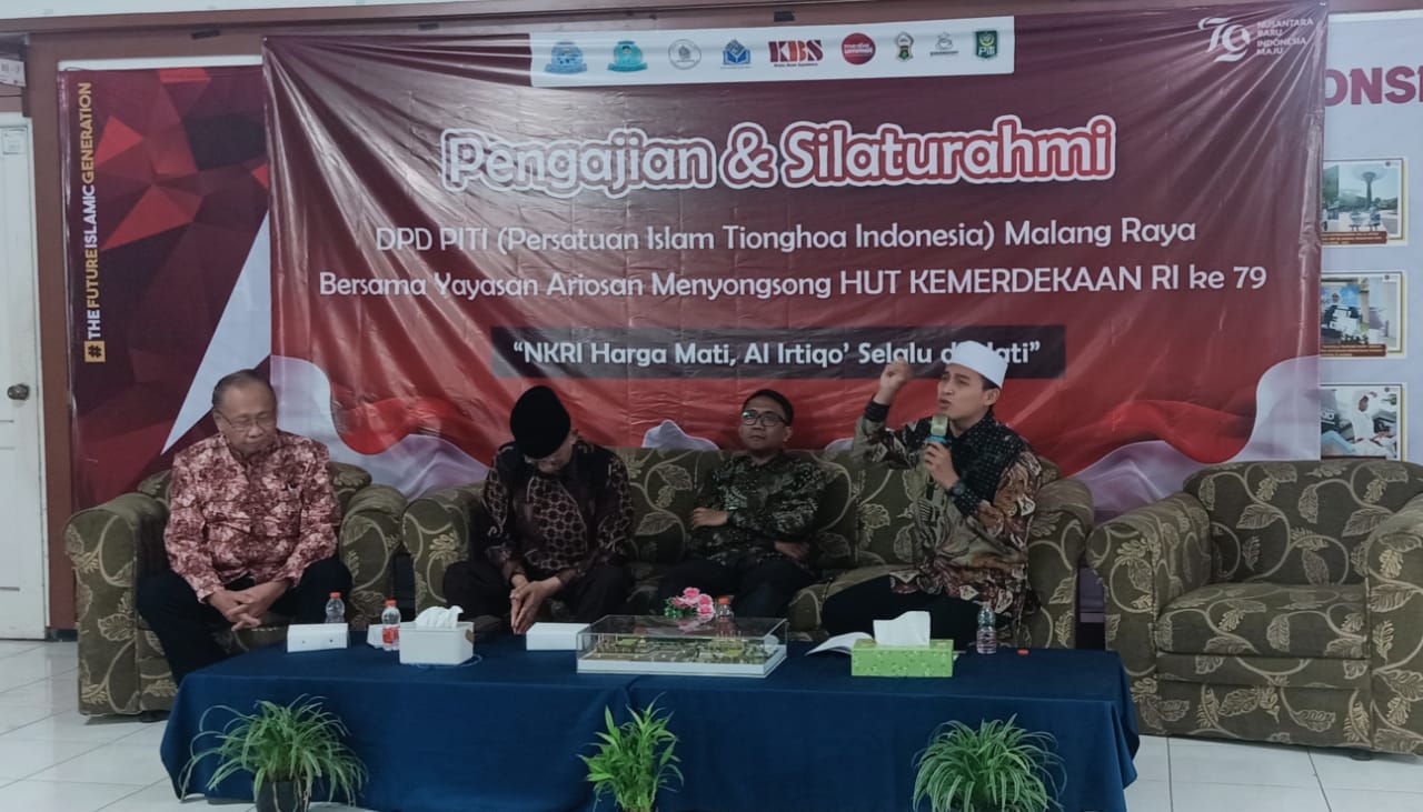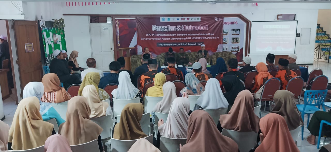 KOTA MALANG (JATIM), SUARAPANCASILA.ID -Dewan Pimpinan Daerah (DPD) Persatuan Islam Tionghoa Indonesia (PITI) Malang Raya bersama Yayasan Ariosan menggelar pengajian dan silahturahmi menyongsong HUT Kemerdekaan Ke-79 RI, bertempat di Madrasah Aliyah Al-Irtiqo, Jalan Letjend S. Parman No.26, Purwantoro, Kecamatan Blimbing, Kota Malang, Minggu, (11/8/2024).