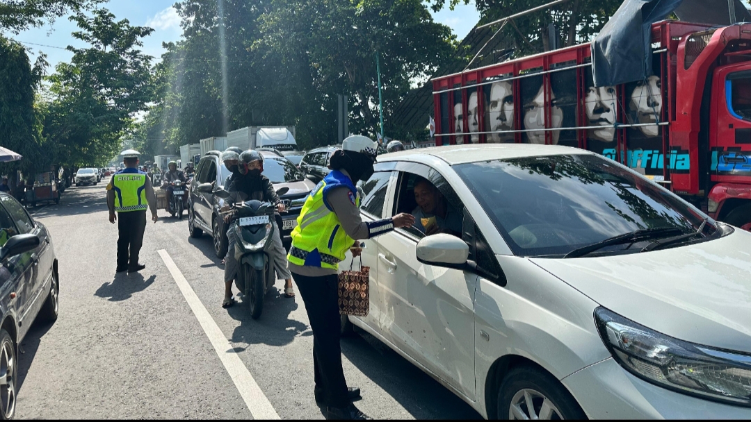 Dalam kegiatan tersebut, puluhan personel Satlantas turun langsung membagikan brosur, stiker, hingga membentangkan spanduk imbauan. Menariknya, pengendara yang kedapatan disiplin dan lengkap surat-kendaraan mendapat apresiasi berupa cokelat dan bingkisan. Sementara pelanggar aturan hanya diberi teguran secara humanis agar lebih tertib di kemudian hari.