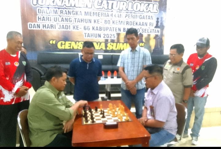 BARITO SELATAN (KALTENG) SUARAPANCASILA.ID – Bupati Barito Selatan H. Eddy Raya Samsuri, ST , MM melalui Asisten II Setda Barito Selatan Rahmat Nuryadin membuka secara resmi Turnamen Catur Lokal dalam rangka memeriahkan HUT ke 80 Kemerdekaan Republik Indonesia dan Hari Jadi ke 66 Kabupaten Barito Selatan tahun 2025, di Aula Bapperida Barsel, Senin 11 Agustus 2025 malam. Sebanyak 170 pecatur lokal ikuti kegiatan itu.