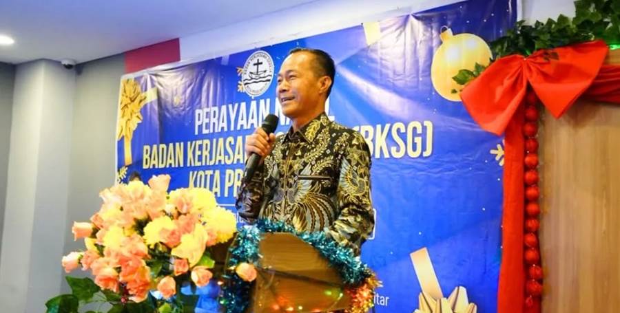 PRABUMULIH (SUMSEL), SUARAPANCASILA.ID – Wali Kota Prabumulih yang diwakili oleh Sekretaris Daerah Kota Prabumulih, H. Elman, S.T., M.M, menghadiri Perayaan Natal Badan Kerjasama Gereja (BKSG) Kota Prabumulih dengan tema “Allah Hadir Untuk Menyelamatkan Keluarga”, (10/1/2026).