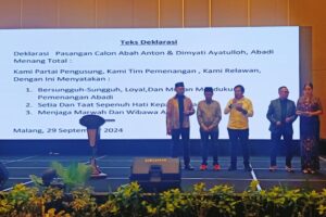 KOTA MALANG (JATIM), SUARAPANCASILA, ID-Pasangan Calon (Paslon) nomor urut 3 H.Moch Anton (Abah Anton)-Dimyati Ayatullah gelar rapat konsolidasi internal pemilihan Walikota dan Walikota Malang, tema deklarasi Abadi Menang Total (Metal), bertempat di Hotel Grand Mercure Malang Mirama, Jl. Raden Panji Suroso No.7, Purwodadi, Kec. Blimbing, Kota Malang, Minggu, (29/09/2024).
