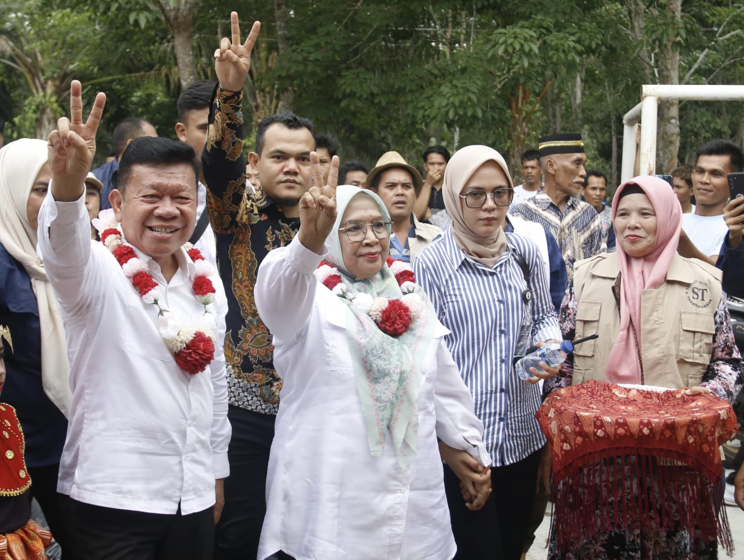 Paslon Bupati dan Wakil Bupati Mura, Nomor Urut 2, Hj Suwarti Burlian-Drs H Thamrin Hasan (Sulthan), mengukuhkan ratusan Tim Dolur di Kecamatan Selangit yang dipusatkan di Desa Taba Gindo, Kecamatan Selangit, Kabupaten Mura, Kamis (26/9/2024).