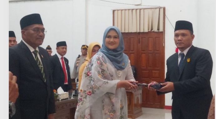 Pengucapan sumpah dan janji Pimpinan DPRD yang baru saja dilantik yakni, Susi Haryati Ketua (PAN) H. Jaswandi Wakil Ketua(PPP) dan Elfia Rita Dewi Wakil Ketua (Golkar).