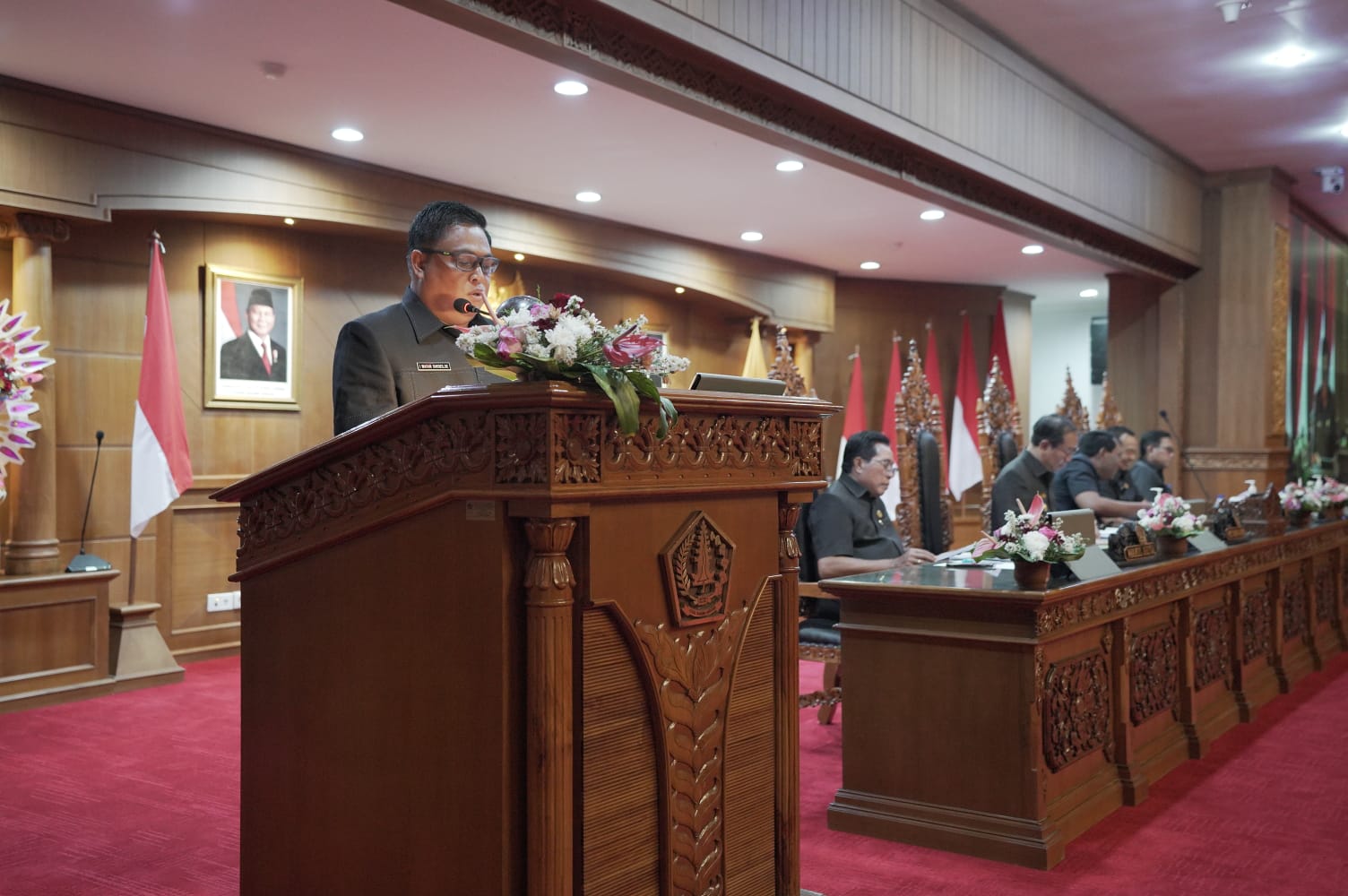 BADUNG,SUARAPANCASILA.id-Pelaksana Tugas (Plt) Bupati Badung, I Ketut Suiasa, menghadiri Sidang Paripurna Kelima Masa Persidangan Pertama DPRD Badung. Sidang yang berlangsung di Ruang Sidang Utama Gosana Kantor DPRD ini membahas tiga Rancangan Peraturan Daerah (Raperda) inisiatif DPRD, yaitu tentang Penyelenggaraan Pendidikan Wawasan Kebangsaan, Desa Wisata, dan Perlindungan serta Pemberdayaan Usaha Mikro (30/10/2024)