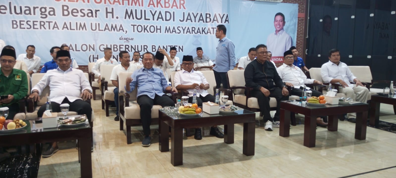 LEBAK.(BANTEN)-SUARAPANCASILA.ID-Keluarga Besar H.Mulyadi Jaya Baya (JB) gelar silaturrahmi akbar menghadirkan para tokoh ulama tokoh masyarakat dan Calon Gubernur Banten H.Andra Sony di KM 7 Jaga Baya Warung Gunung Lebak Banten. minggu 6/10/2024.