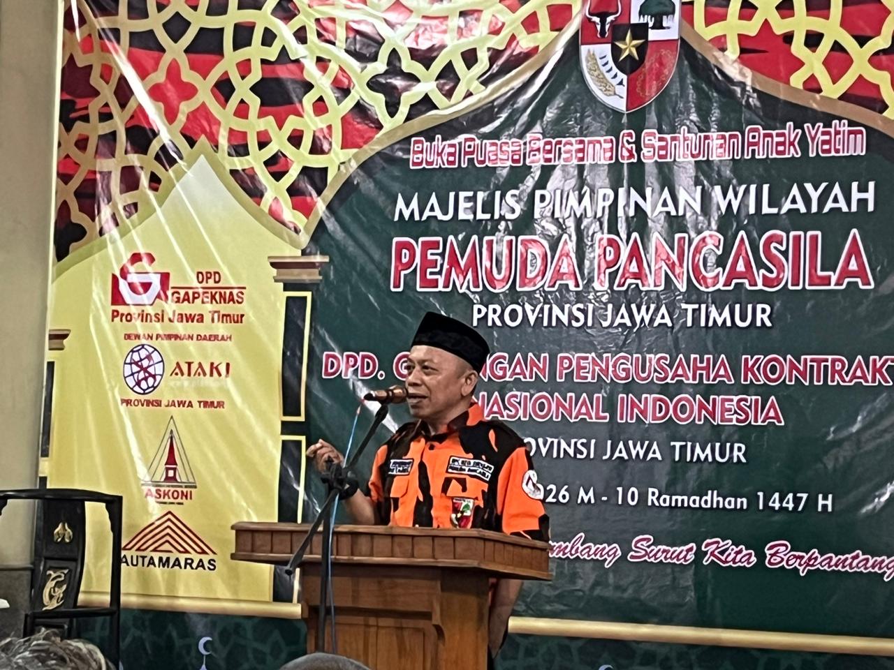 KOTA SURABAYA (JATIM), SUARAPANCASILA,ID – Di tengah dinamika sosial-politik dan transisi ekonomi digital tahun 2026, Majelis Pimpinan Wilayah (MPW) Pemuda Pancasila Jawa Timur bersama Dewan Pimpinan Daerah Gabungan Pengusaha Kontraktor Nasional Indonesia (Gapeknas) Jawa Timur menggelar refleksi spiritual dan sosial melalui agenda buka puasa bersama dan santunan anak yatim pada Sabtu (28/02/2026).