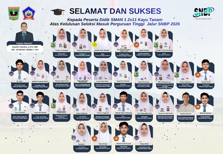 Capaian tersebut menjadi bukti nyata kualitas pendidikan yang terus ditingkatkan oleh SMAN 1 Kayutanam, sekaligus menunjukkan komitmen sekolah dalam mengantarkan peserta didik menuju jenjang pendidikan yang lebih tinggi dan masa depan yang cerah.