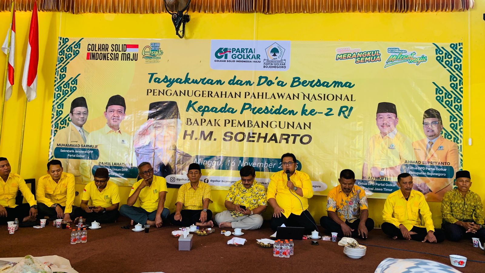 KAB BOJONEGORO (JATIM) SUARAPANCASILA.ID – Partai Golkar Bojonegoro menggelar acara syukuran untuk merayakan penganugrahan gelar Pahlawan Nasional kepada Almarhum H.M. Soeharto, Presiden Republik Indonesia (RI) ke-2 yang dikenal sebagai Bapak Pembangunan.
