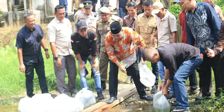 LAHAT, SUARA PANCASILA.ID – Pemerintah Kabupaten Lahat terus memperkuat strategi ketahanan pangan berbasis sumber daya lokal melalui langkah konkret di sektor perikanan. Usai menghadiri rangkaian kegiatan syukuran satu tahun pelantikan kepala daerah serta acara bayar nazar Kepala Desa Talang Tinggi, Kecamatan Pseksu, Bupati Lahat Bursah Zarnubi melaksanakan agenda strategis berupa penebaran bibit ikan di aliran sungai desa setempat, Sabtu (18/04/2026).