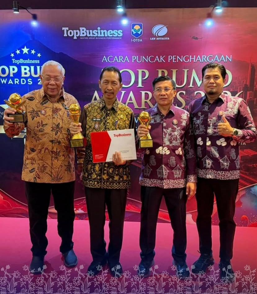 MUARA ENIM,SUARA PANCASILA.ID – Berkat keberhasilan dalam meningkatkan capaian kinerja PT. Bank Perekonomian Rakyat (BPR) Muara Enim (Perseroda) atau Bank Muara Enim, Bupati Muara Enim berhasil meraih Top Pembina BUMD 2026 oleh Majalah Top Bussines. Penyerahan secara simbolis oleh ketua penyelenggara, Moh. Luthfi Handayani, M.M., MBA., kepada Bupati Muara Enim diwakili Asisten Pemerintahan dan Kesra, Drs. Andi Wijaya, M.M., pada Senin (13/04) di Dian Ballroom Hotel Raffles, Jakarta Selatan.