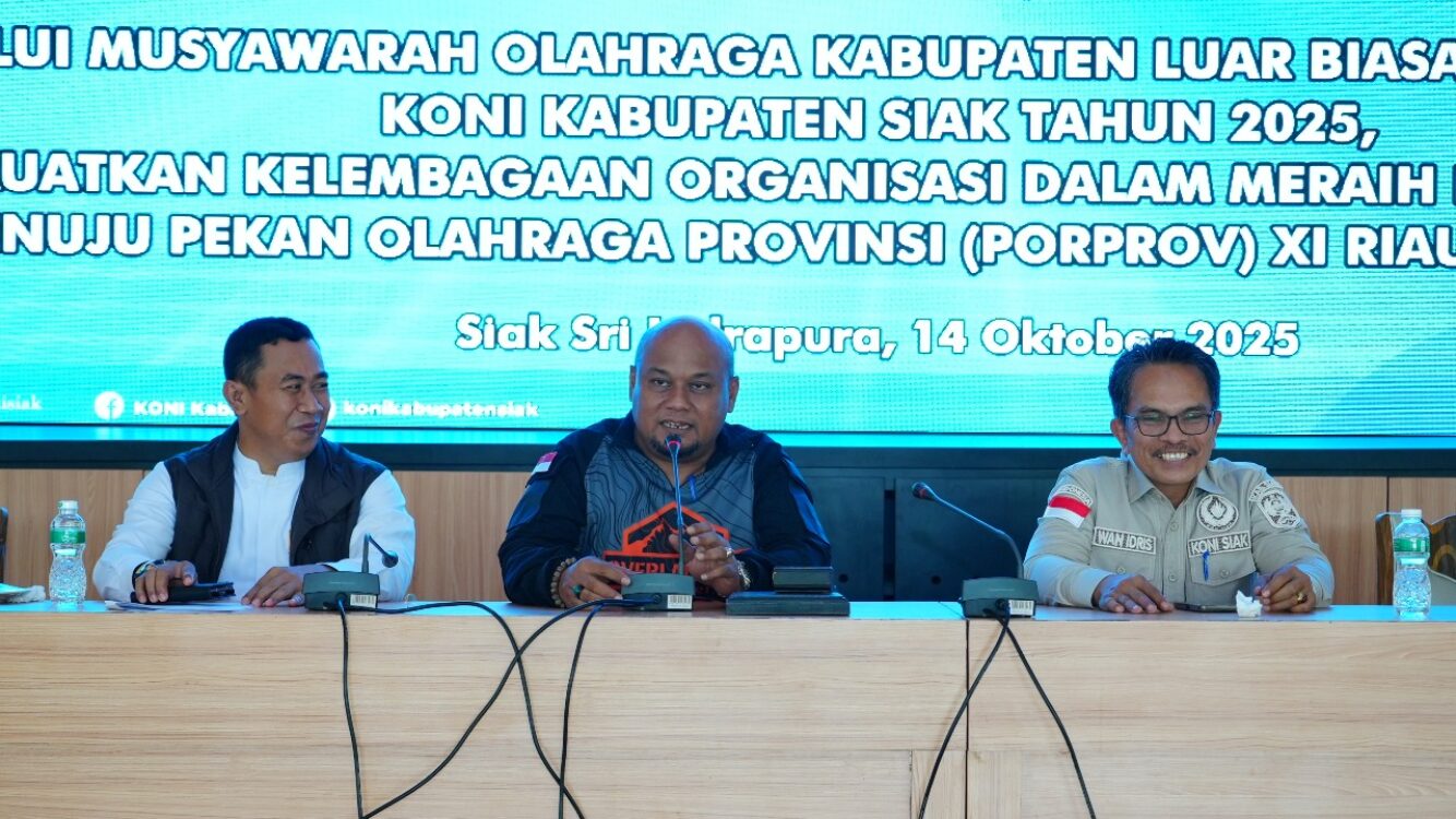 SIAK (RIAU), SUARAPANCASILA.ID – Musyawarah Olahraga Kabupaten Luar Biasa (Musorkablub) Komite Olahraga Nasional Indonesia (KONI) Kabupaten Siak Tahun 2025 resmi menetapkan Syamsurizal Budi sebagai Ketua Umum KONI Kabupaten Siak masa bakti 2025–2029.