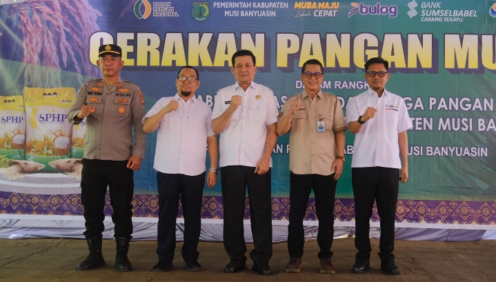 MUBA (SUMSEL), -SUARAPANCASILA.ID -SEKAYU– Upaya pengendalian harga beras dan inflasi di Kabupaten Musi Banyuasin terus digencarkan. Dinas Ketahanan Pangan Kabupaten Muba menggelar Gerakan Pangan Murah (GPM) bekerja sama dengan Perum Bulog Kanwil Sumsel Babel, Bank Sumsel Babel, dan PT Muba Energi Maju Berjaya. Kegiatan ini berlangsung Rabu (15/4/2026) di Halaman Dinas Ketahanan Pangan Kabupaten Musi Banyuasin.