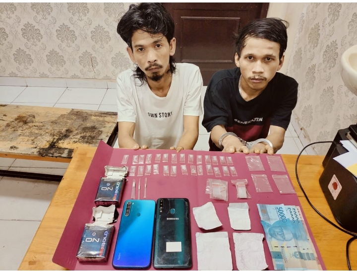 JH(25) dan JS(25) diamankan Satres Narkoba Polres Siak dengan barang bukti 27 (dua puluh tujuh) paket Narkotika jenis shabu dengan berat kotor 4,34 (empat koma tiga puluh empat) gram.