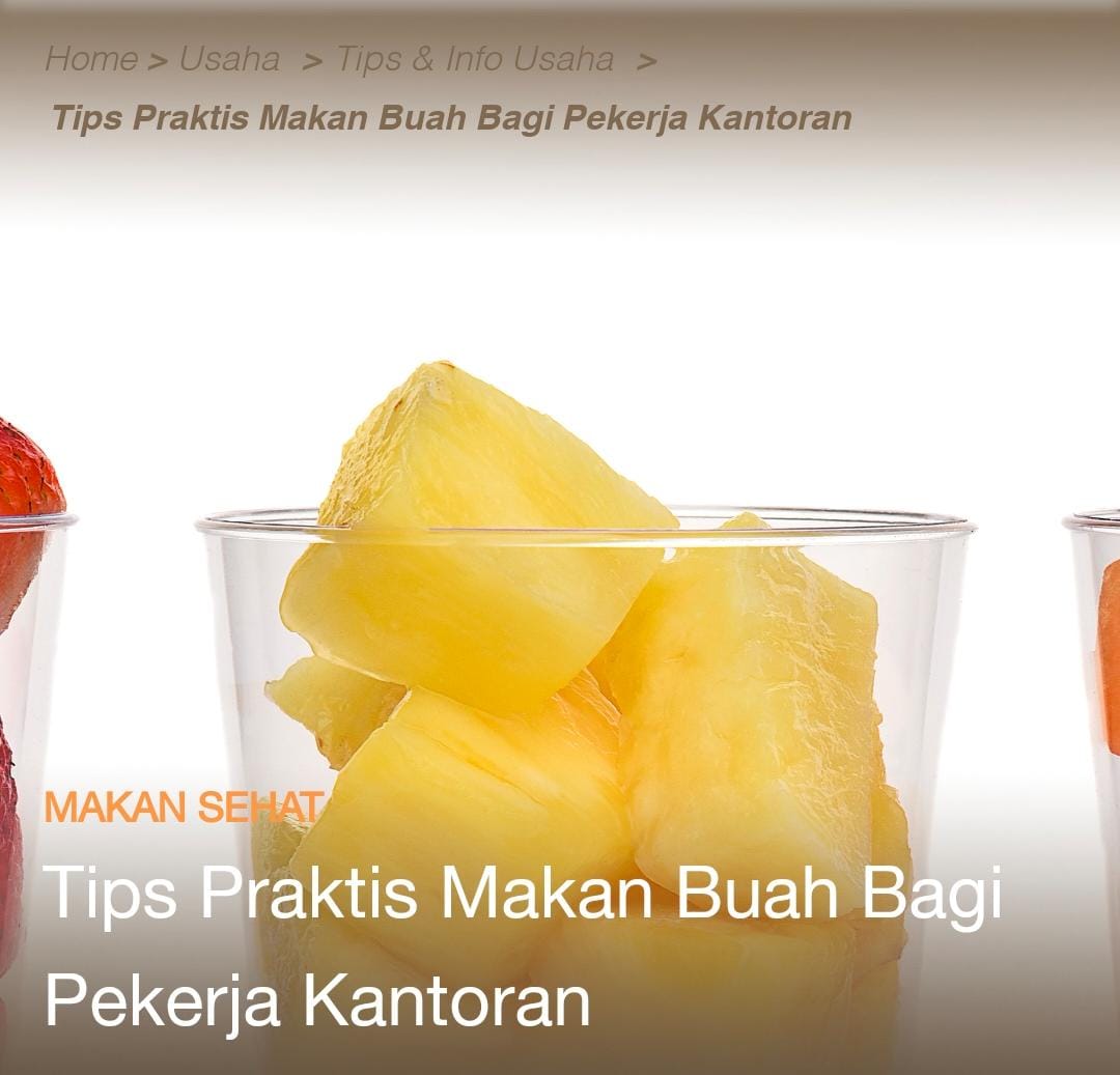 Anda ingin menjadi pekerja kantoran yang sehat? Salah satu caranya adalah dengan mengonsumsi buah-buahan secara rutin. Namun, sekarang ini banyak pekerja kantoran yang kesulitan mendapatkan buah-buahan di kantor untuk dikonsumsi setiap hari. Kondisi seperti ini biasanya diakibatkan oleh banyaknya tugas kantor, malasnya pekerja kantoran mencari buah, dan merasa cukup atas apa yang sudah dikonsumsi sehingga pekerja kantoran tidak dapat menyempatkan waktu untuk mencari buah.