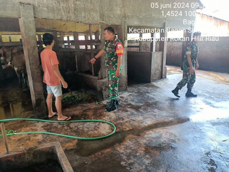 Kegiatan kali ini dilakukan oleh dua orang Babinsa Koramil 0321-03/Bgs Rohil yang dipimpin oleh Serda Simanjuntak yang pada Rabu (5/6/2024) dengan mendatangi ternak sapi milik warga kepenghuluan Bagan Batu kecamatan Bagan Sinembah.