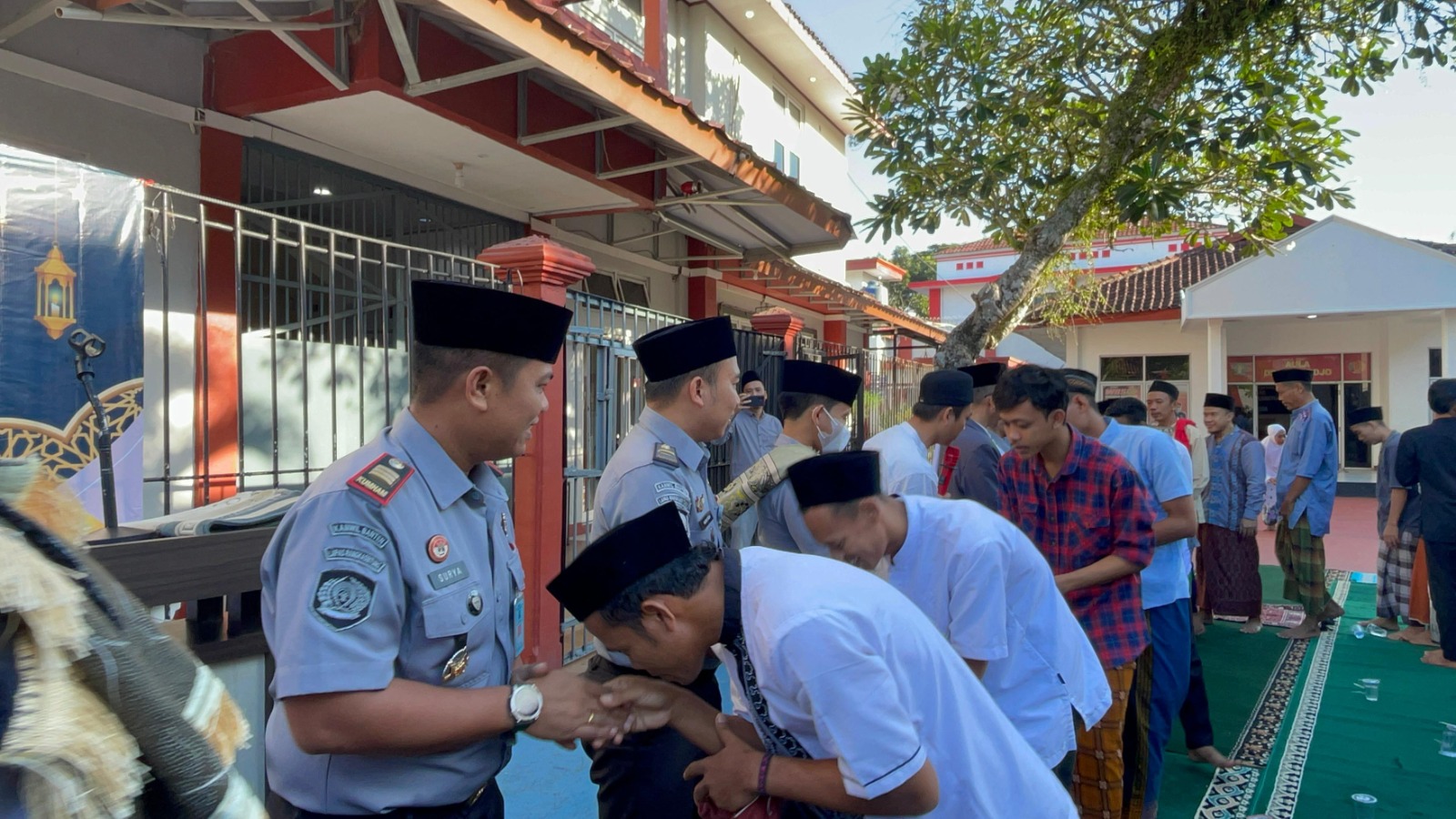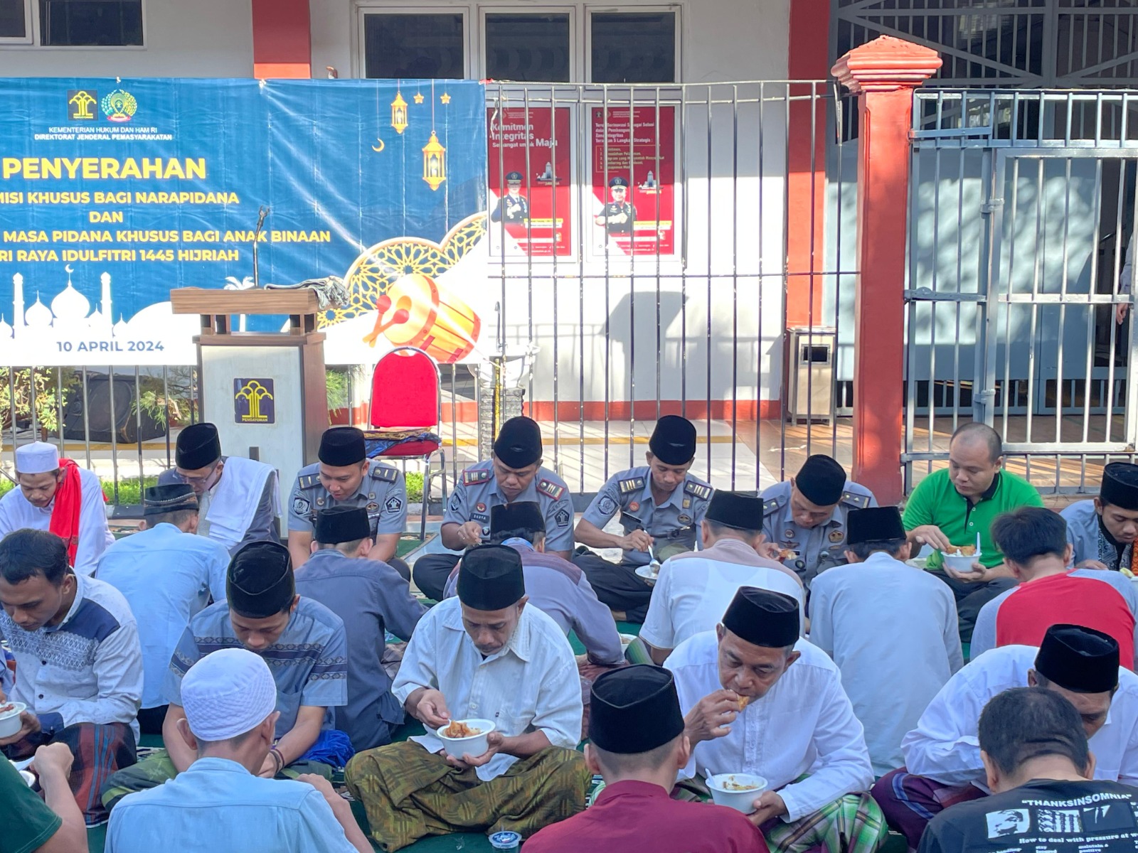 Usai melaksanakan Shalat Ied bersama dan penyerahan secara simbolis Remisi Khusus, Kalapas beserta Pejabat Struktural dan Pegawai Lapas Rangkasbitung makan ketupat bersama Warga Binaan.