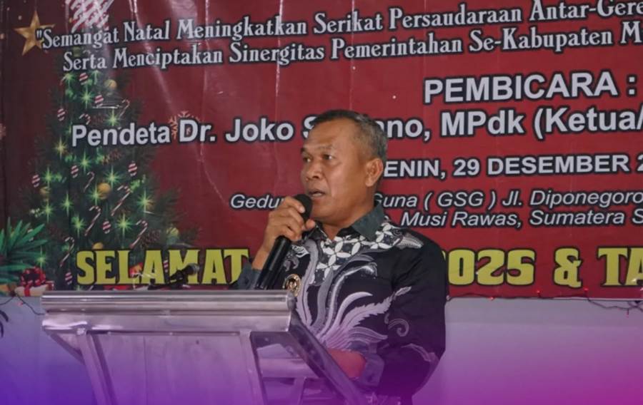 MUSI RAWAS (SUMSEL), SUARAPANCASILA.ID – Wakil Bupati Musi Rawas H. Suprayitno menghadiri Ibadah dan Perayaan Natal Oikoumene Umat Kristiani se-Kabupaten Musi Rawas yang dilaksanakan di Gedung Serbaguna (GSG) Megang Sakti. Senin, 29 Desember 2025.