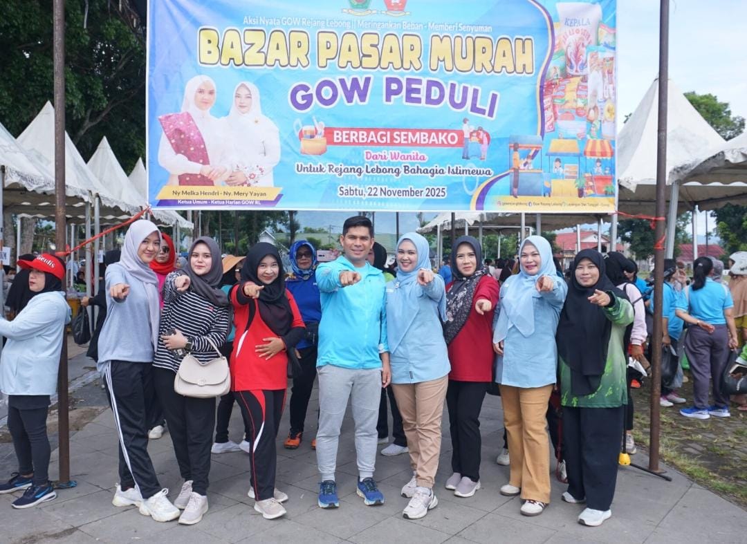 REJANG LEBONG (BENGKULU), SUARAPANCASILA.ID — Wakil Bupati Rejang Lebong, Dr. H. Hendri Praja, SSTP,menghadiri gelaran Bazar Murah dan Bakti Sosial GOW Peduli yang diselenggarakan GabunganOrganisasi Wanita (GOW) Kabupaten Rejang Lebong di Lapangan Dwi Tunggal, Curup, Sabtu(22/11/2025). Acara yang berlangsung sejak pagi ini menjadi kegiatan pembuka rangkaianGebyar HUT GOW 2025.