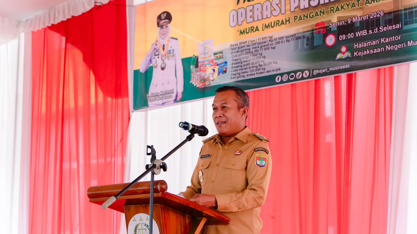 MUSI RAWAS (SUMSEL), SUARAPANCASILA.ID – Wakil Bupati Musi Rawas H. Suprayitno hadiri Operasi Pasar Murah dengan tema MURA (MUrah pangan, Rakyat Aman) yang diadakan Kejaksaan Negeri (Kejari) Musi Rawas bekerja sama dengan Pemerintah Kabupaten Musi Rawas. Bertempat di halaman Kantor Kejaksaan Negeri Musi Rawas, Senin (09/03/2026).